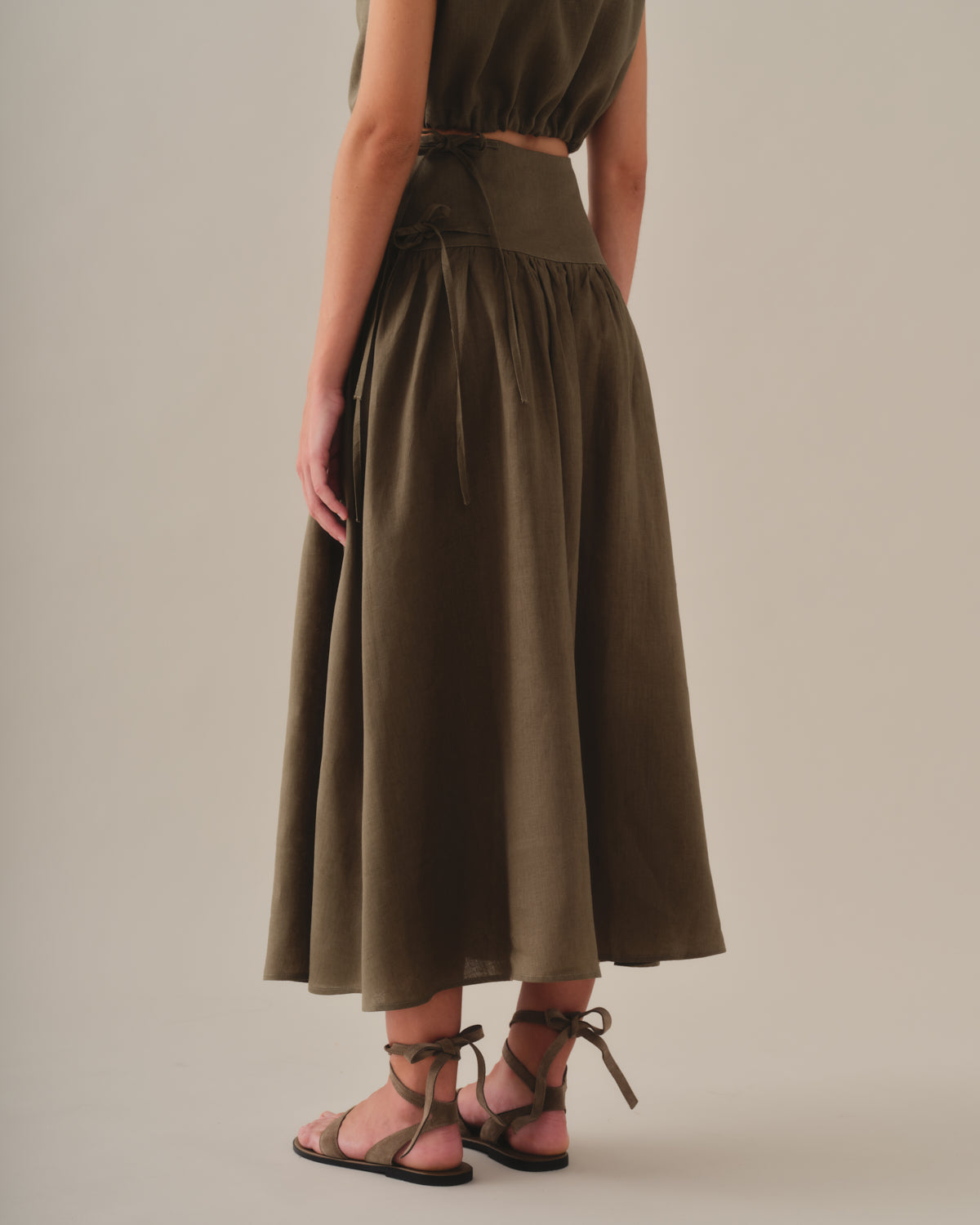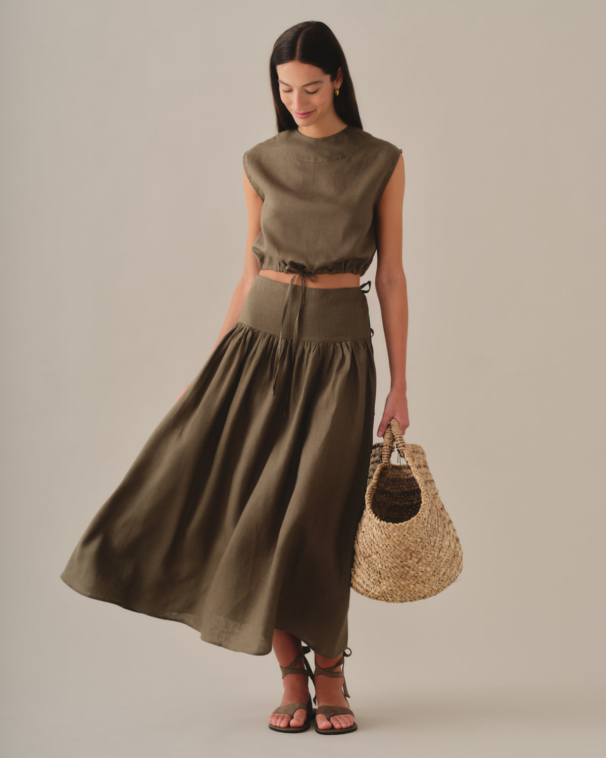 The Kate Skirt features a sleek A-line silhouette and high waist for a flattering fit. Crafted from 100% linen, it pairs perfectly with the Top Kate for an elegant, timeless look. A versatile piece for any occasion.