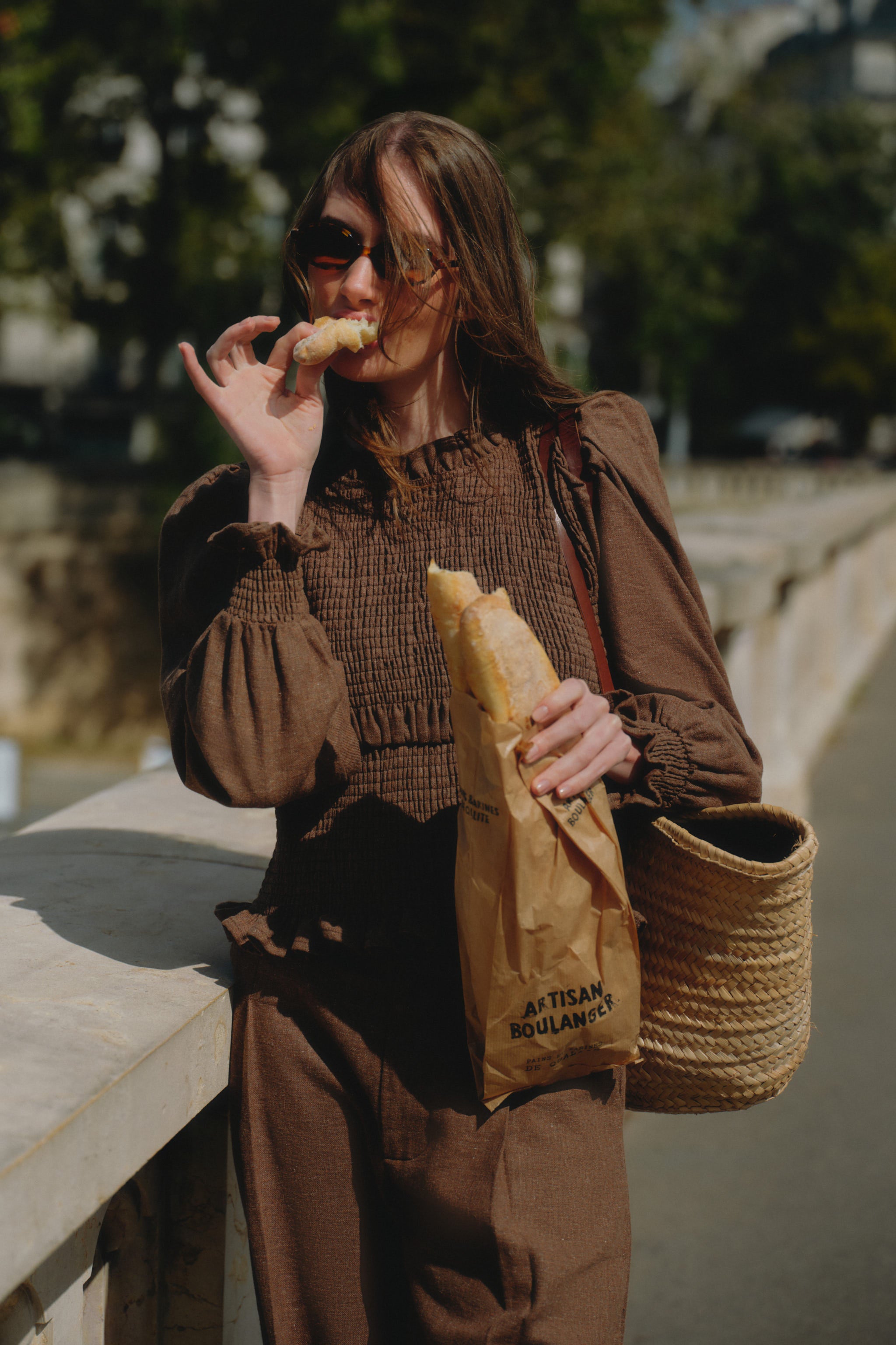 The Blouse Hailey is a structured, long-sleeve top with voluminous puff sleeves and a ruched, form-fitting bodice. Featuring a high neckline and fitted cuffs, it blends vintage charm with a tailored silhouette, perfect for adding elegance to any look.