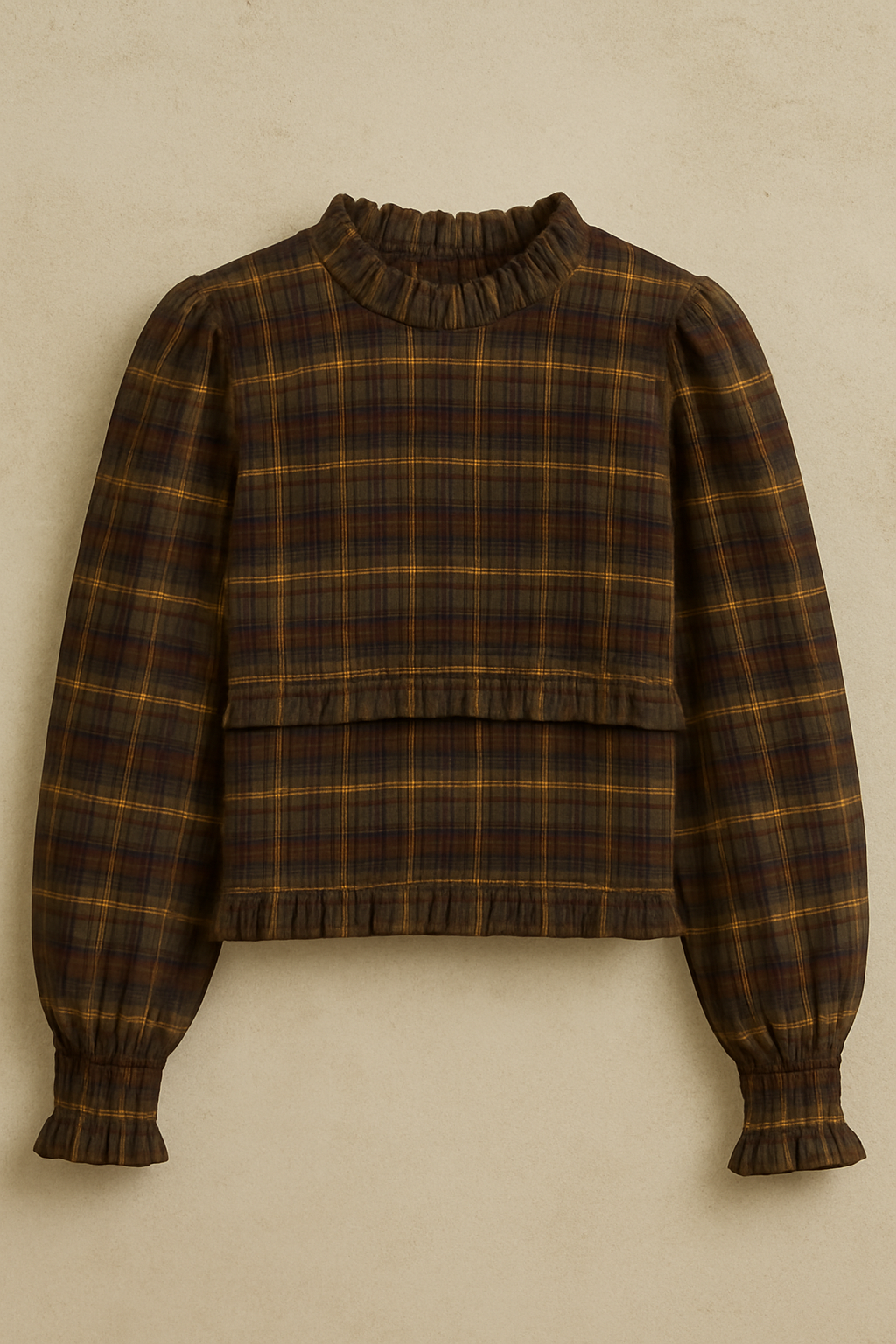 The Blouse Hailey is a structured, long-sleeve top with voluminous puff sleeves and a ruched, form-fitting bodice. Featuring a high neckline and fitted cuffs, it blends vintage charm with a tailored silhouette, perfect for adding elegance to any look.