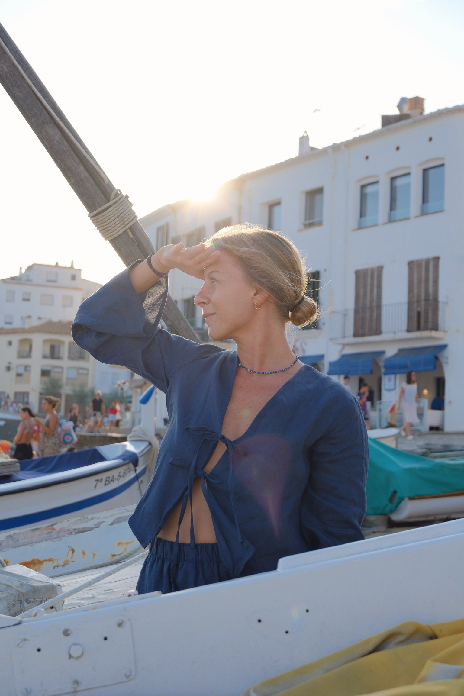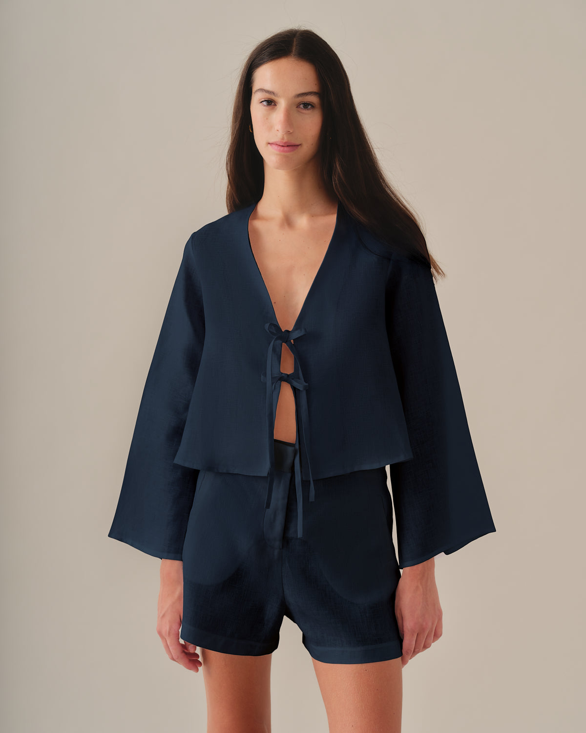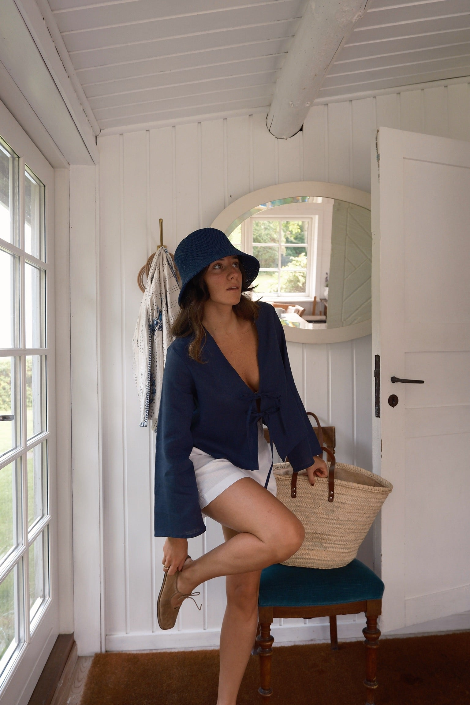 ~Made from 100% linen ~Regular fit, slighlty cropped. ~Adjustable at the front with linen straps. ~Perfect every day and dressier ocassions. ~Runs small, we recommen sizing up for this fit. ~Our model is wearing a size M.