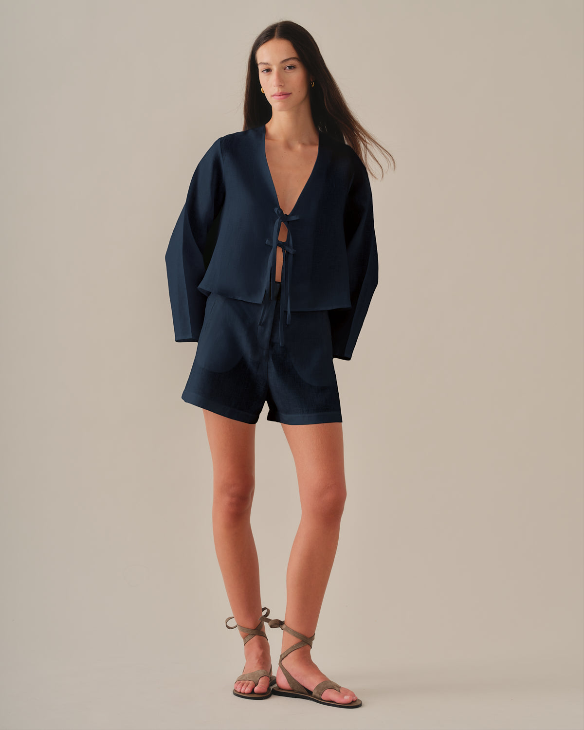 The Shorts Sofia are tailored for both comfort and elegance, featuring a structured waistband with refined details for a polished look. Crafted from breathable 100% linen, they offer a lightweight and airy feel, perfect for warm summer days. The clean lines and versatile design make them a staple for effortless style.