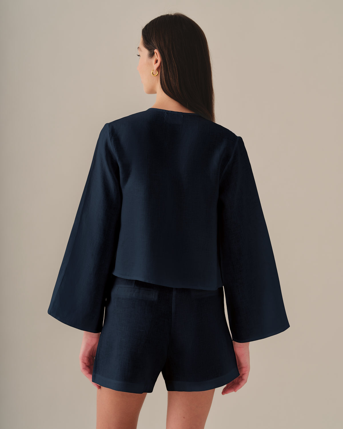 A timeless classic blouse, the Anne features long straight sleeves and a wide V-neckline with adjustable front straps for a perfect fit. Its slightly loose, cropped silhouette creates a clean, effortless look, ideal for any occasion.