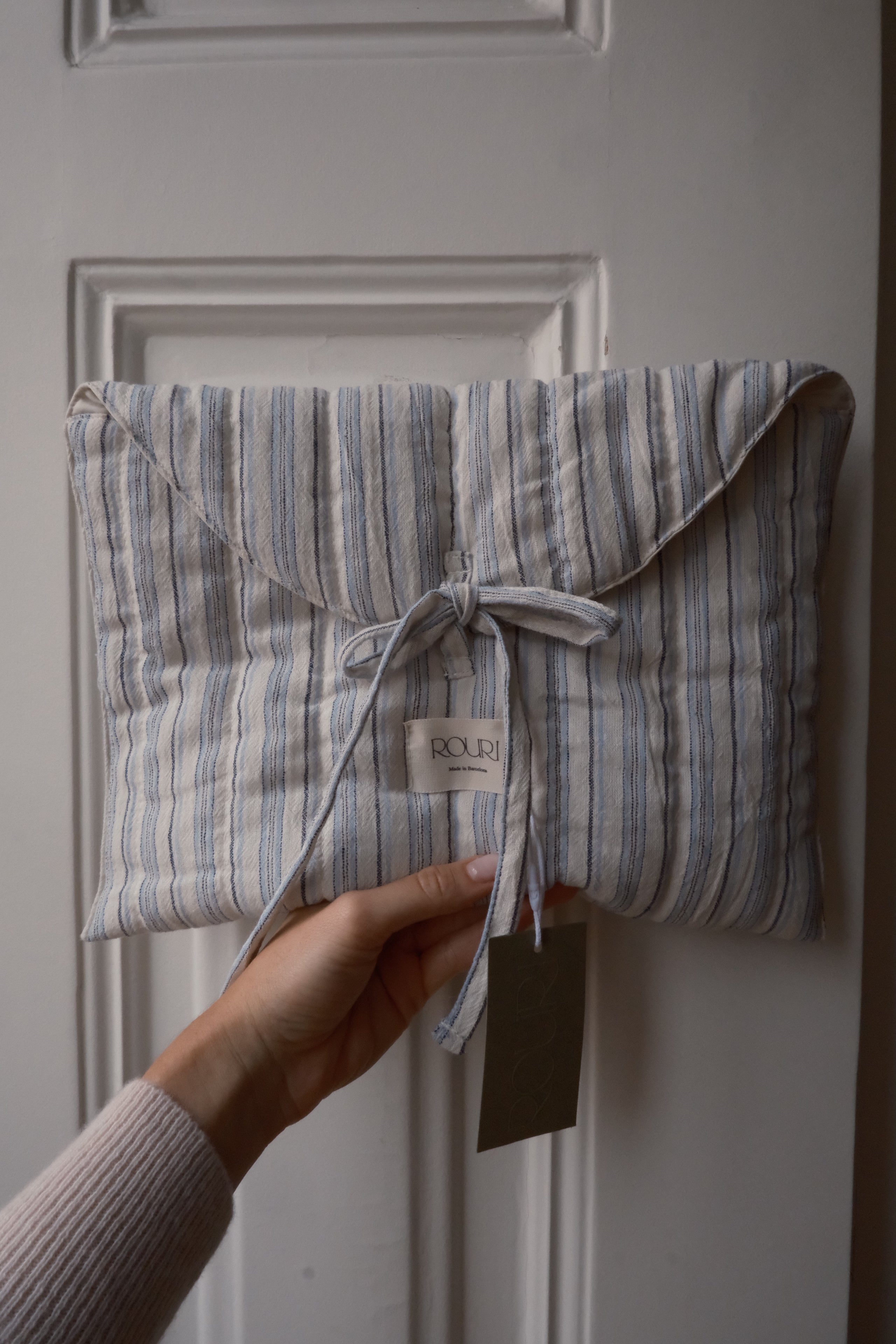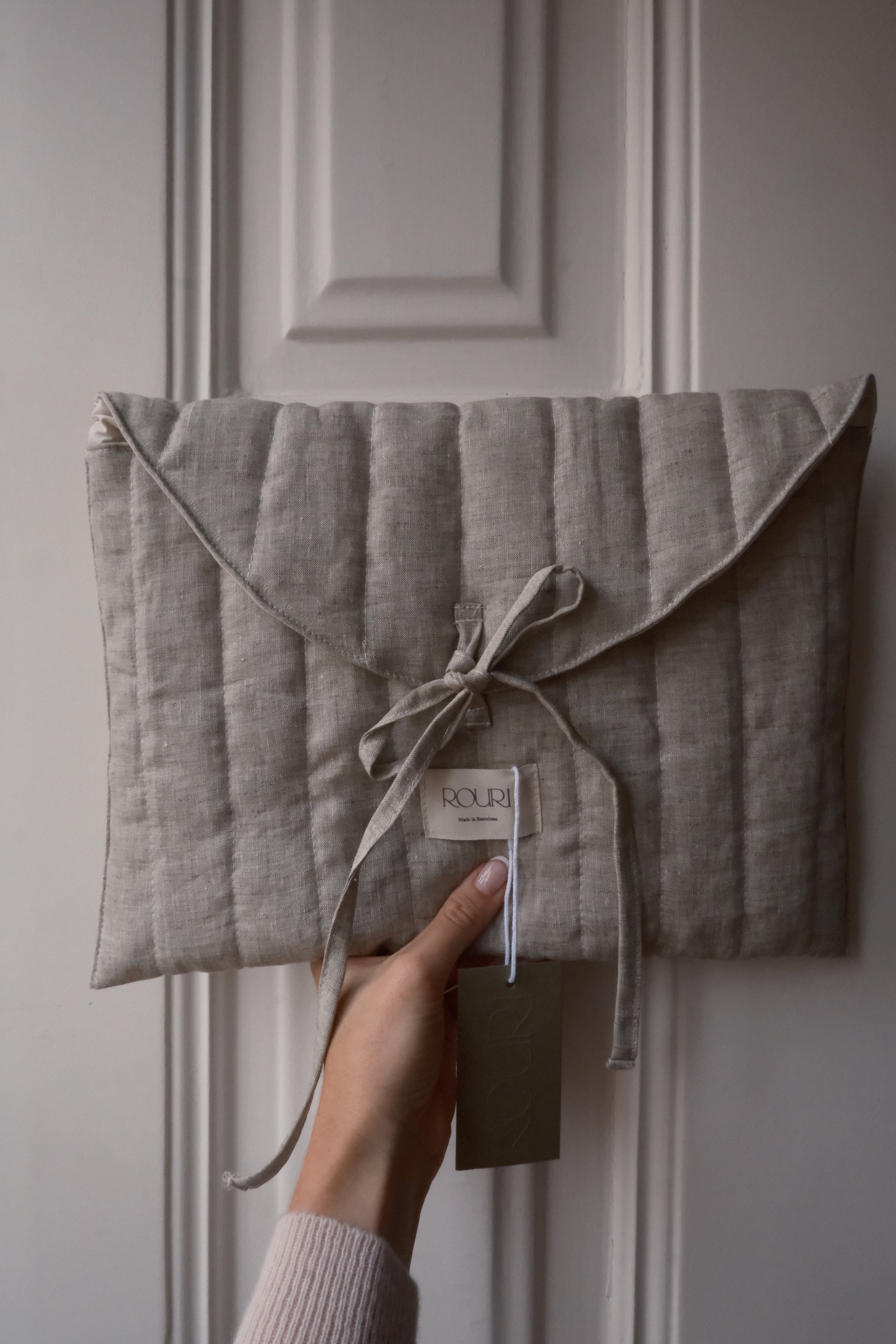 A padded laptop pouch designed to protect your computer while keeping things stylish. Lightweight and practical, it comfortably fits laptops up to 14’’. Featuring a fold-over flap secured with a little bow, it strikes the perfect balance between function and design for everyday use.