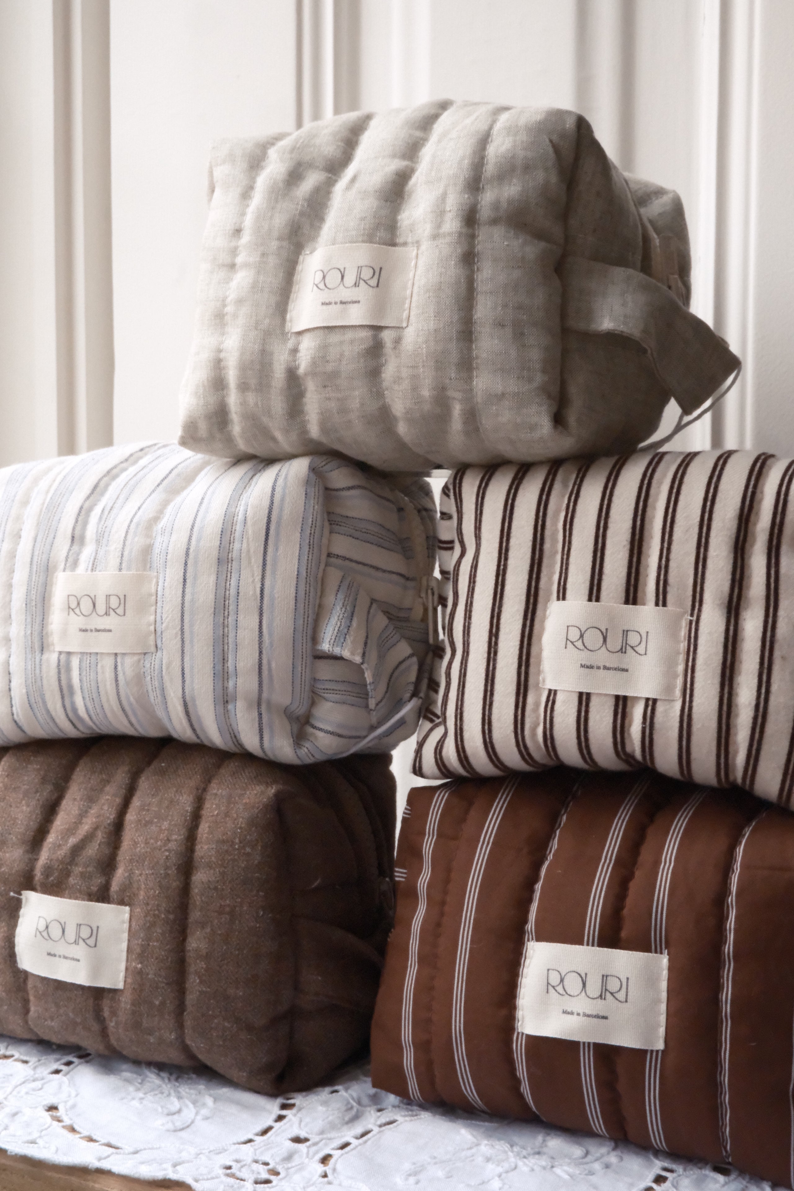 Fabric: ~* Cocoa Chocolate 55% Linen, 45% cotton - Lining 100% Cotton ~* Striped Brown 100%Cotton - Lining 100% Cotton ~* Striped White 100%Cotton - Lining 100% Cotton ~* Striped White and Baby Blue 100%Cotton - Lining 100% Cotton ~* Stone Beige 100%Linen - Lining 100% Cotton ~* Plaid Brow 100%Cotton - Lining 100% Cotton ~Care Instructions: ~In order to ensure they will last for their maximum lifetime it is best to hand wash or machine wash on a low temperature (cold or lukewarm) with a mild detergent. A mild detergent would typically mean any detergent that is scent-dye free, a detergent designed for baby clothes, or a specific linen detergent. ~If the piece is from cotton we advise to hand wash or washing machine with cold water and little soap. Do not use the tumble dryer. We recommend to not leave the piece wet because otherwise it can stretch or get a different shape.