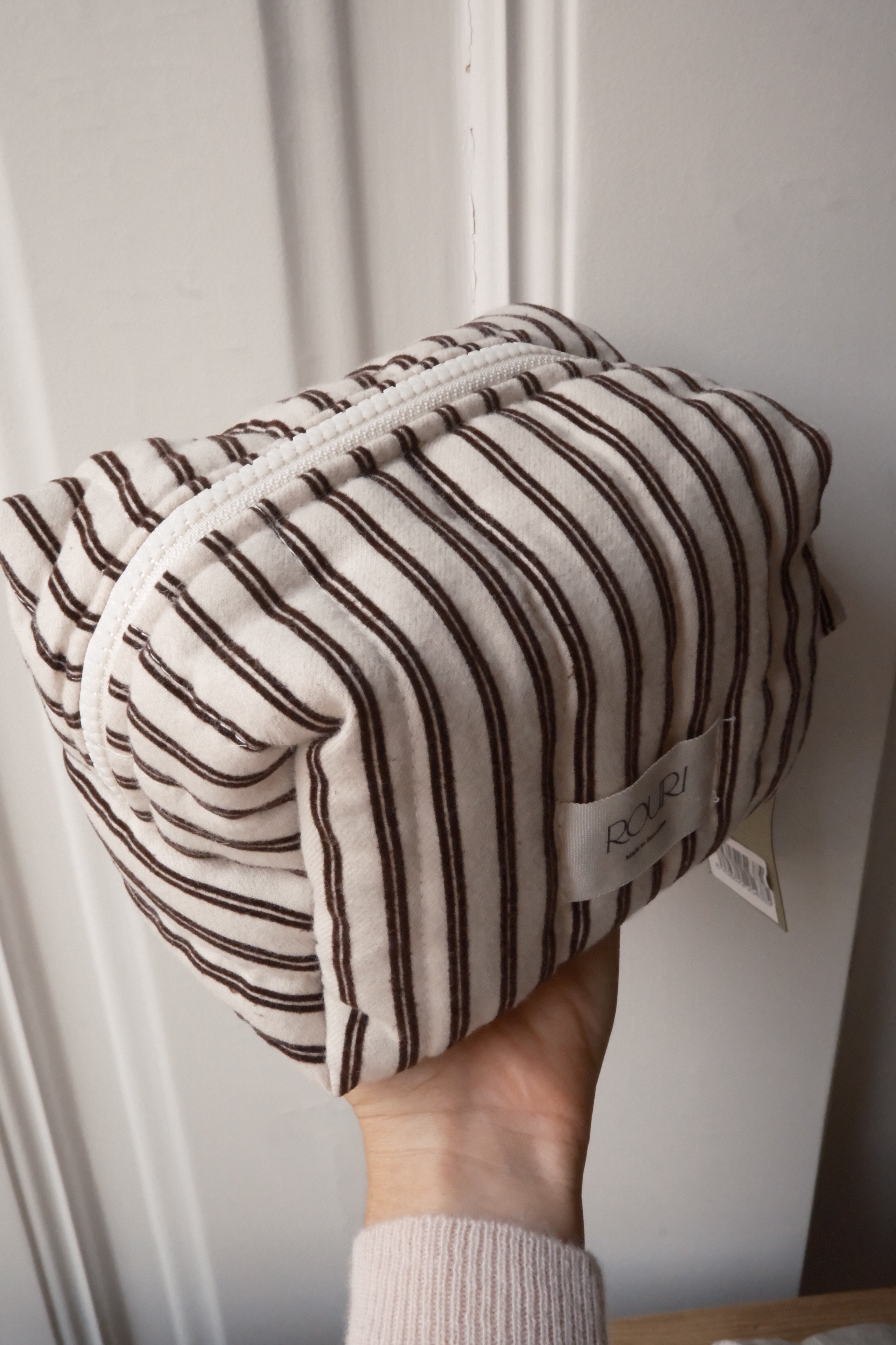 A soft quilted pouch that blends practicality with style. Its compact size makes it ideal for organizing makeup, accessories, or daily must-haves. Finished with a secure top zipper, it’s versatile enough to slip into your bag or carry on its own.