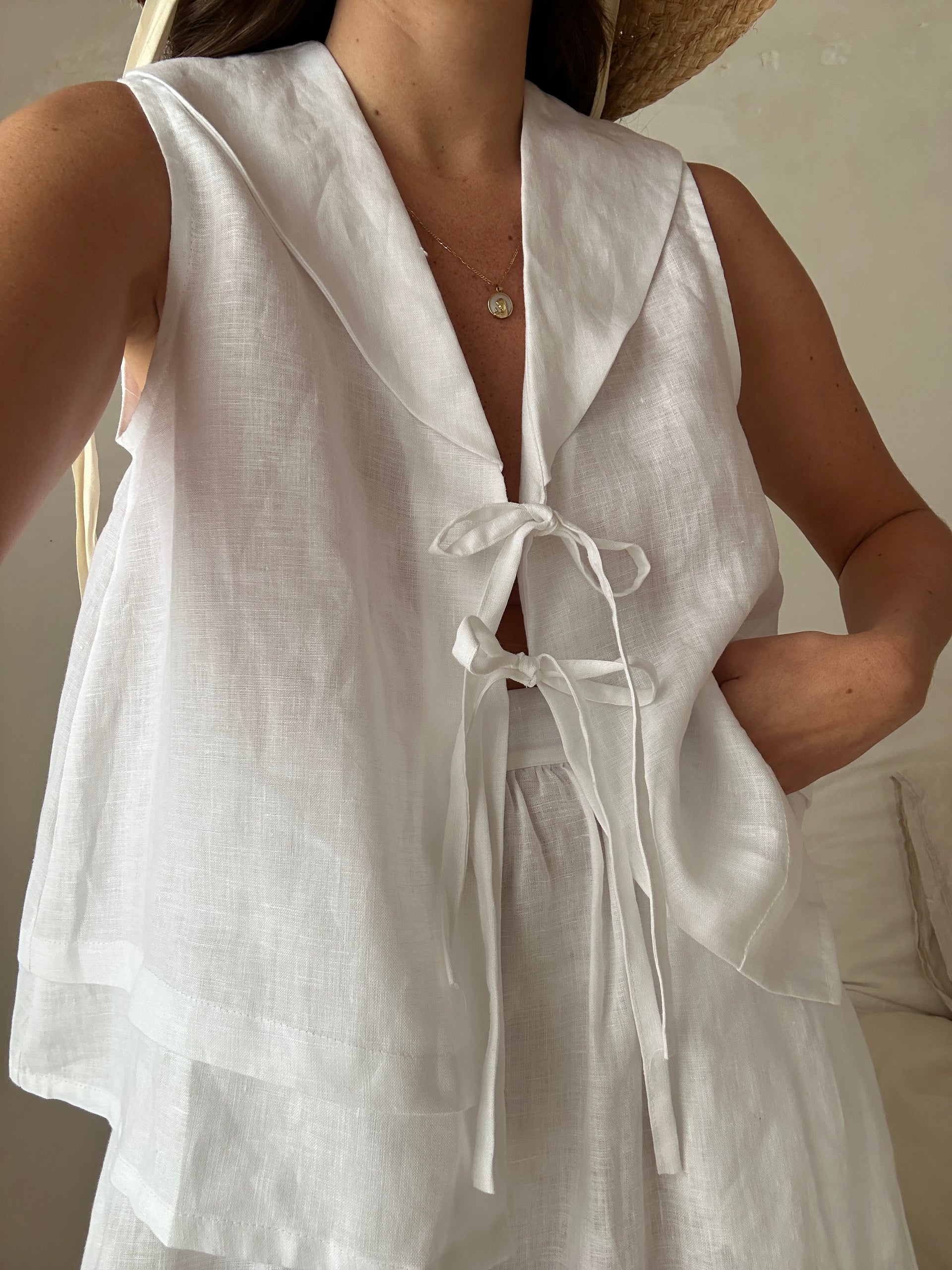 Conçue pour celles qui apprécient le rythme lent des étés méditerranéens, chaque pièce célèbre le savoir-faire artisanal et l'élégance naturelle. Confectionnée en 100 % lin, la collection incarne un style intemporel, mêlant silhouettes aériennes et textures naturelles. Des robes fluides aux coupes décontractées, ces pièces capturent l'essence des journées ensoleillées et de la sérénité du littoral – une ode à l'art de vivre lentement et à la beauté de la simplicité.
