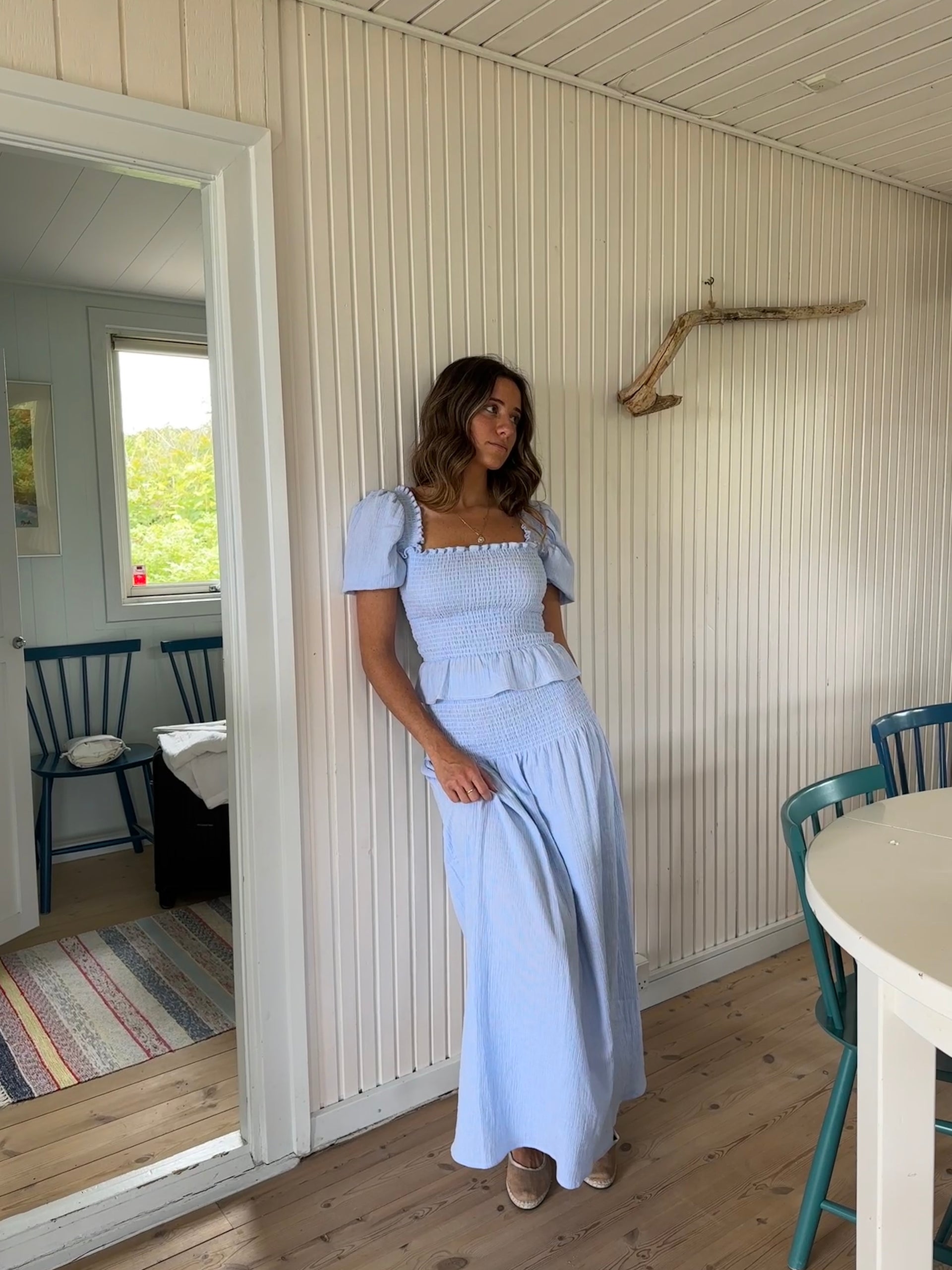 Une charmante ville côtière du Danemark, réputée pour son élégance décontractée et sa beauté naturelle. Inspirée du charme doux et ensoleillé d'un film de Nancy Meyers, chaque pièce reflète le luxe tranquille de la vie balnéaire nordique. Conçue en coton naturel respirant, la collection présente des lignes épurées et des silhouettes aériennes dans des tons blancs et neutres doux, idéales pour les matins tranquilles, les heures dorées et tout ce qui se trouve entre les deux. C'est l'été scandinave, parfaitement stylé.