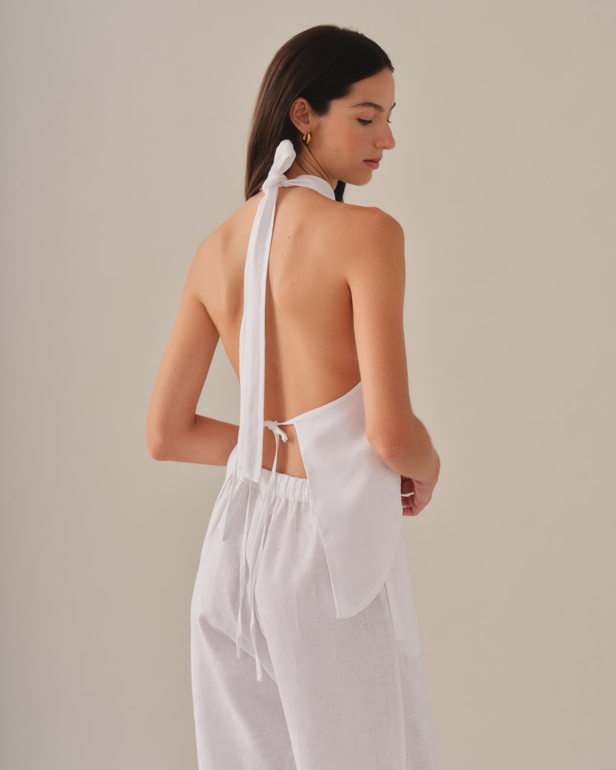 Le Top Gale est un élégant haut dos nu à la silhouette classique, doté d'un dos nu et de bretelles réglables pour plus d'adaptabilité et de confort. Confectionné en 100 % lin, il est parfait pour les occasions décontractées comme plus habillées. Sa doublure élégante prévient toute transparence.
