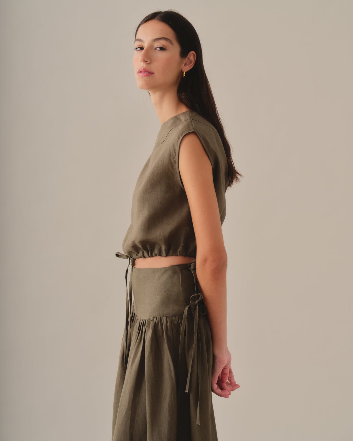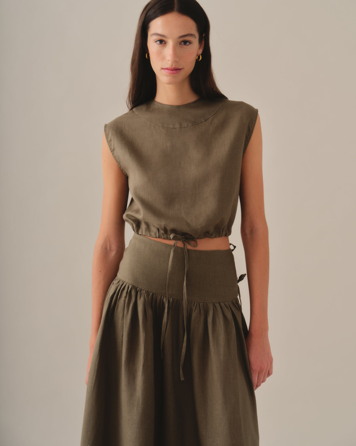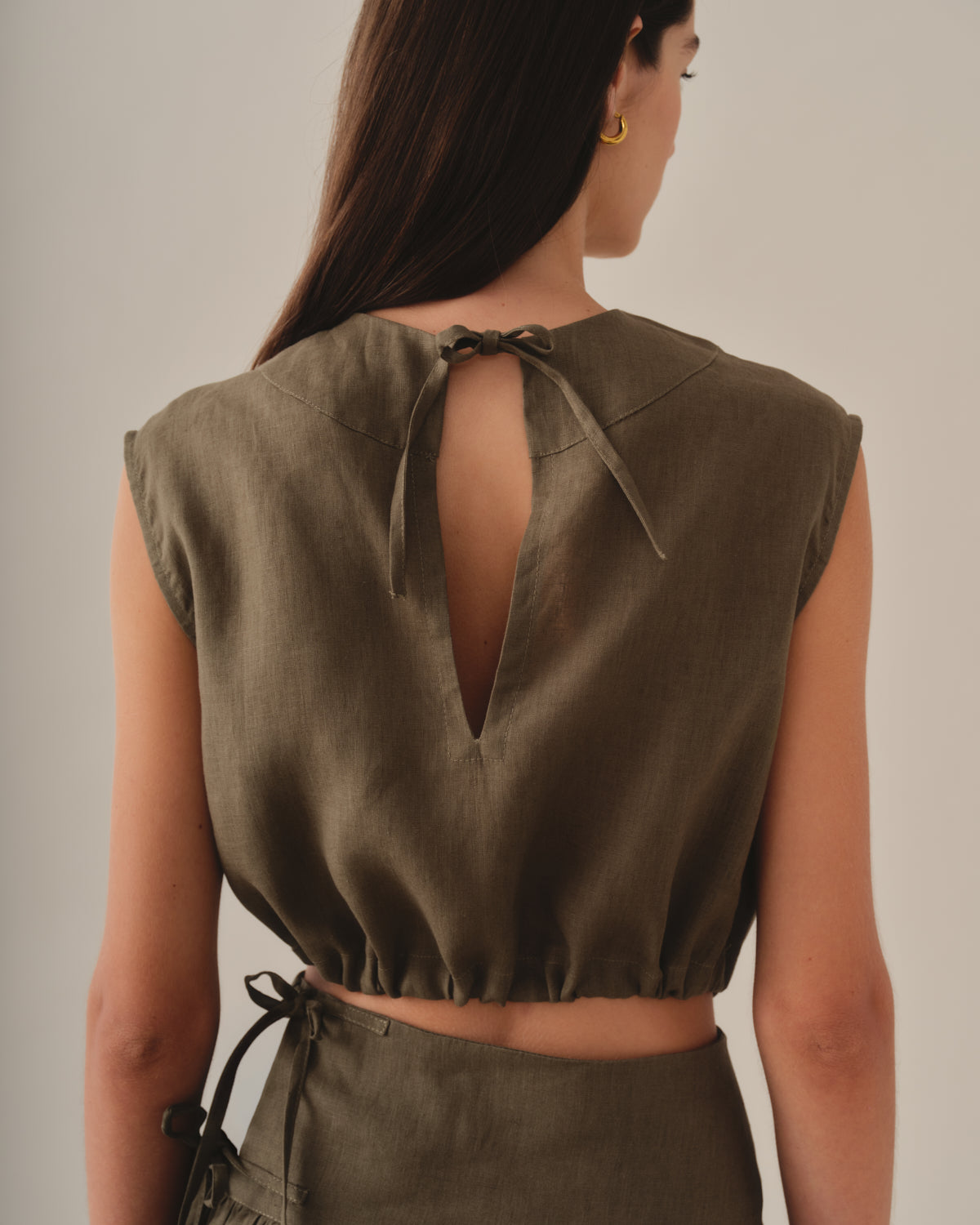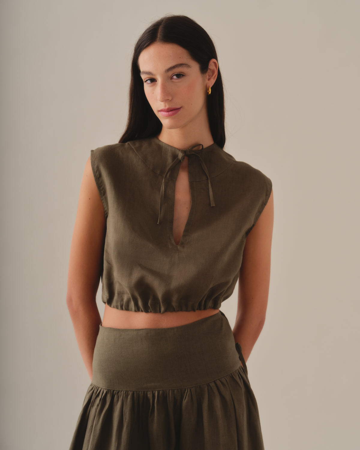 Le Top Kate est un haut légèrement raccourci 100 % lin, conçu pour une polyvalence sans effort. Son design réversible vous permet de le porter dans les deux sens : optez pour le devant classique pour un look intemporel ou pour le dos avec une ouverture subtile pour un style plus audacieux. Un incontournable de votre garde-robe estivale quotidienne.