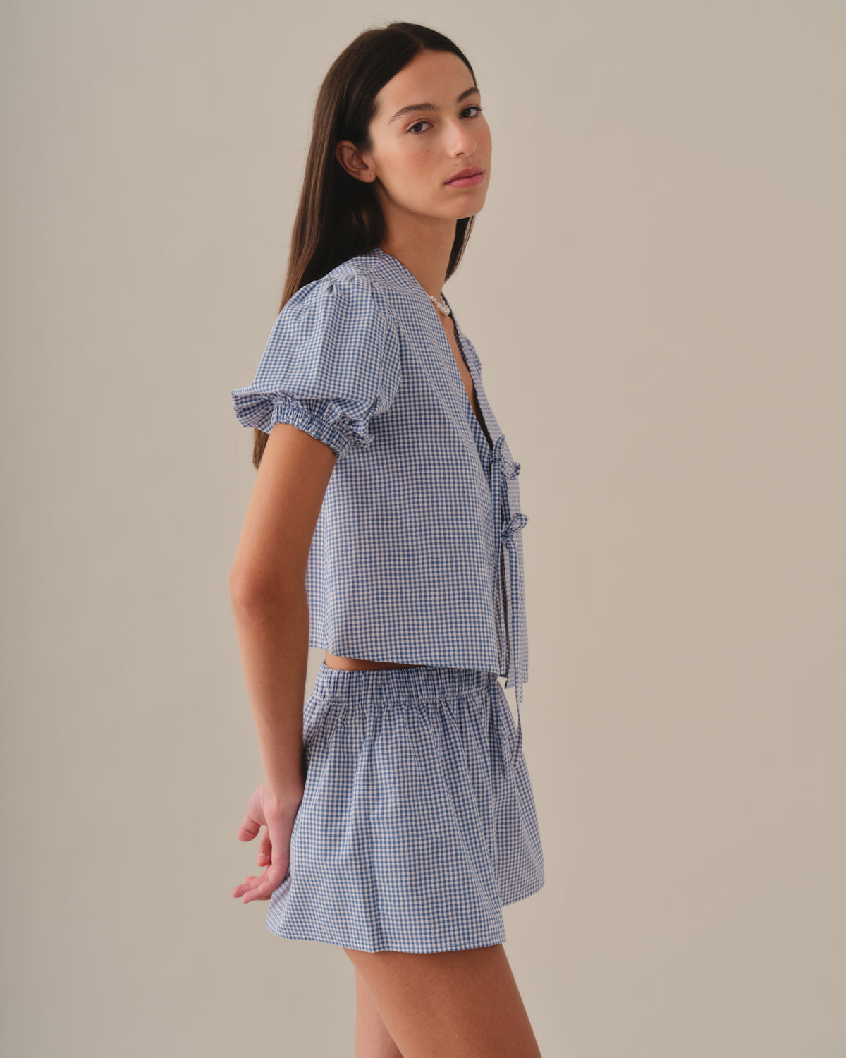 Le short Vicky est un classique intemporel de Rouri, avec une taille haute et une ceinture élastique pour un ajustement confortable. Associez-le au chemisier Vicky pour un look de jour chic et coordonné sans effort.